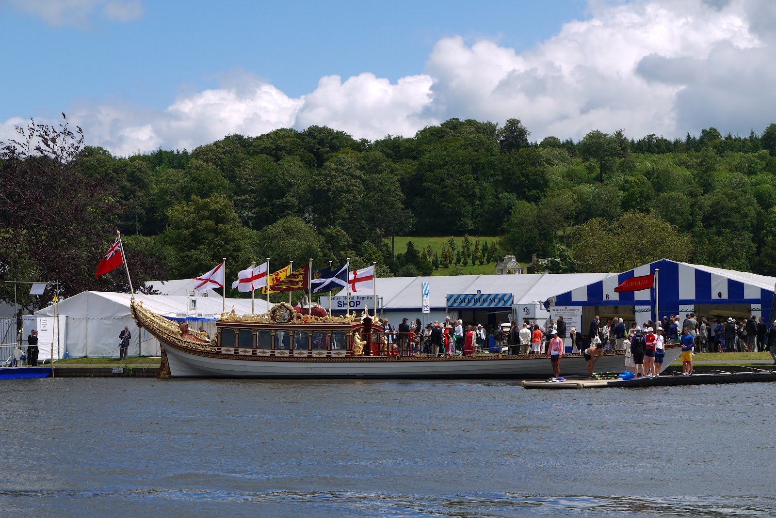 We turned right into Thameside to follow the river and on this occasion offered great views across to the regatta sight. For some, the sight of the Royal Barge, recently seen in the flotilla down the Thames in honour of the Queen's Jubilee, was a great delight.